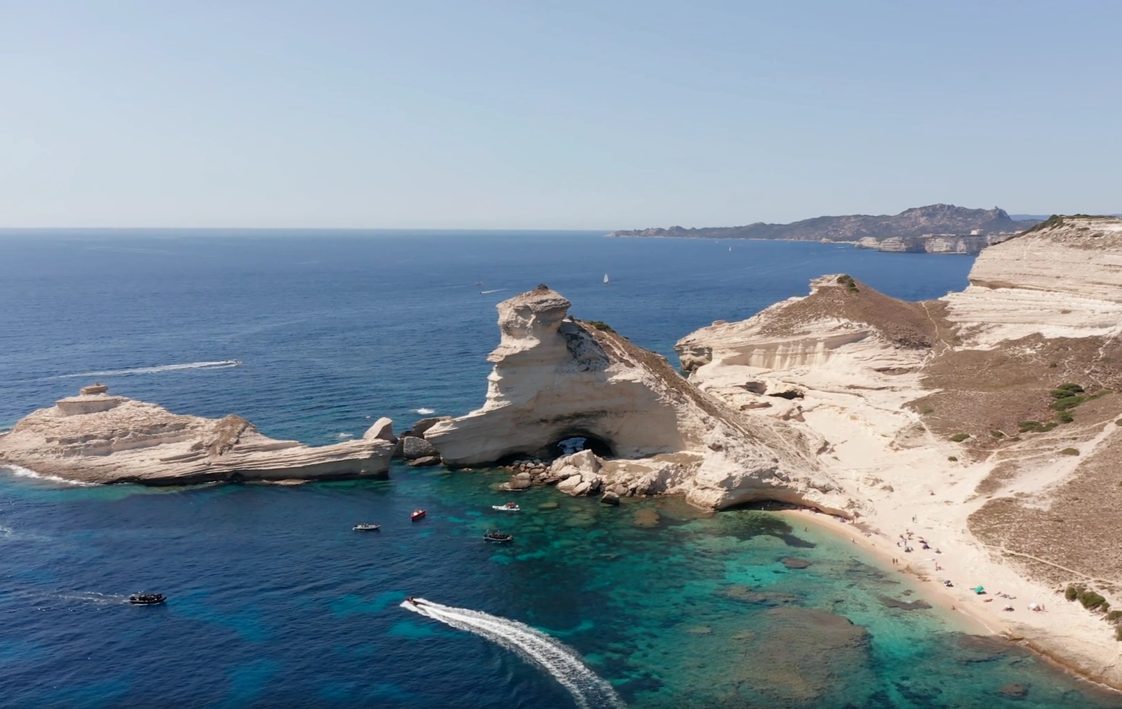 Quand le jour décline et que le soleil enflamme les falaises, l’instant devient magique. L’air se charge de douceur, le clapotis des vagues berce la soirée, et le vin pétillant danse dans les verres. Autour de vous, le granit s’embrase de teintes dorées, rosées, pourpres, tandis que la ville suspendue s’endort lentement. Charcuterie et fromages corses accompagnent ce moment suspendu, intime et convivial. Amoureux bercés par la romance de l’instant, amis savourant la lumière dorée, familles en quête de souvenirs impérissables, avec un nombre limité de passagers, l’atmosphère reste exclusive et privilégiée. Un dernier toast face à l’horizon, et Bonifacio s’illumine doucement sous les étoiles.